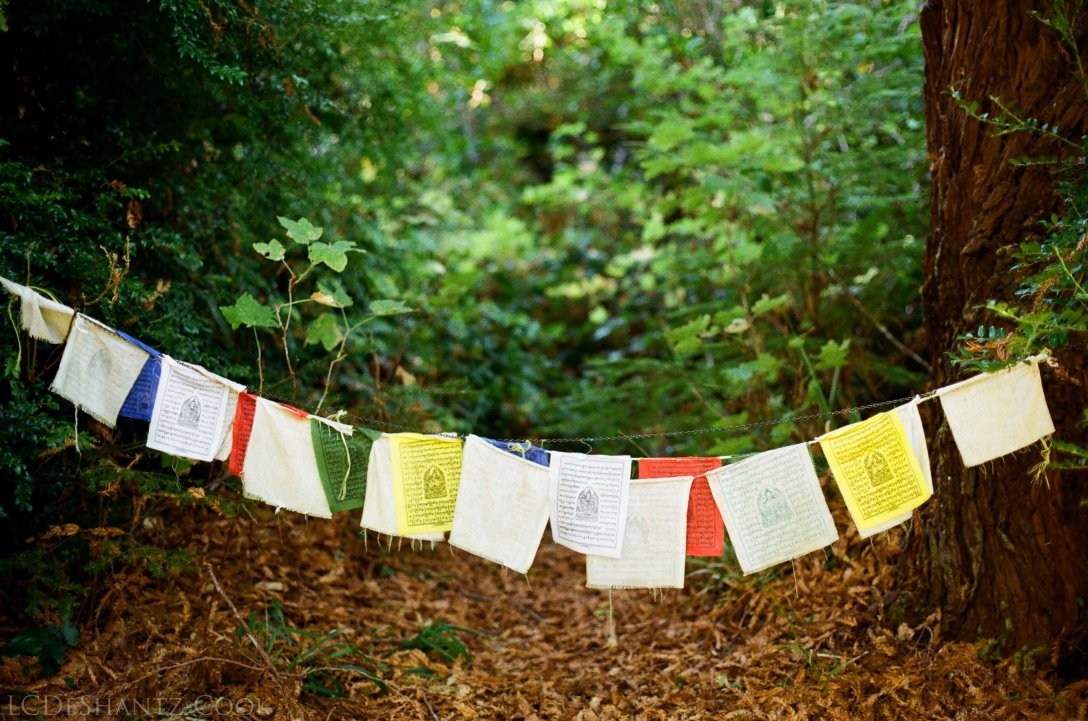 our cabin in the woodsprayer flags and pathgarden